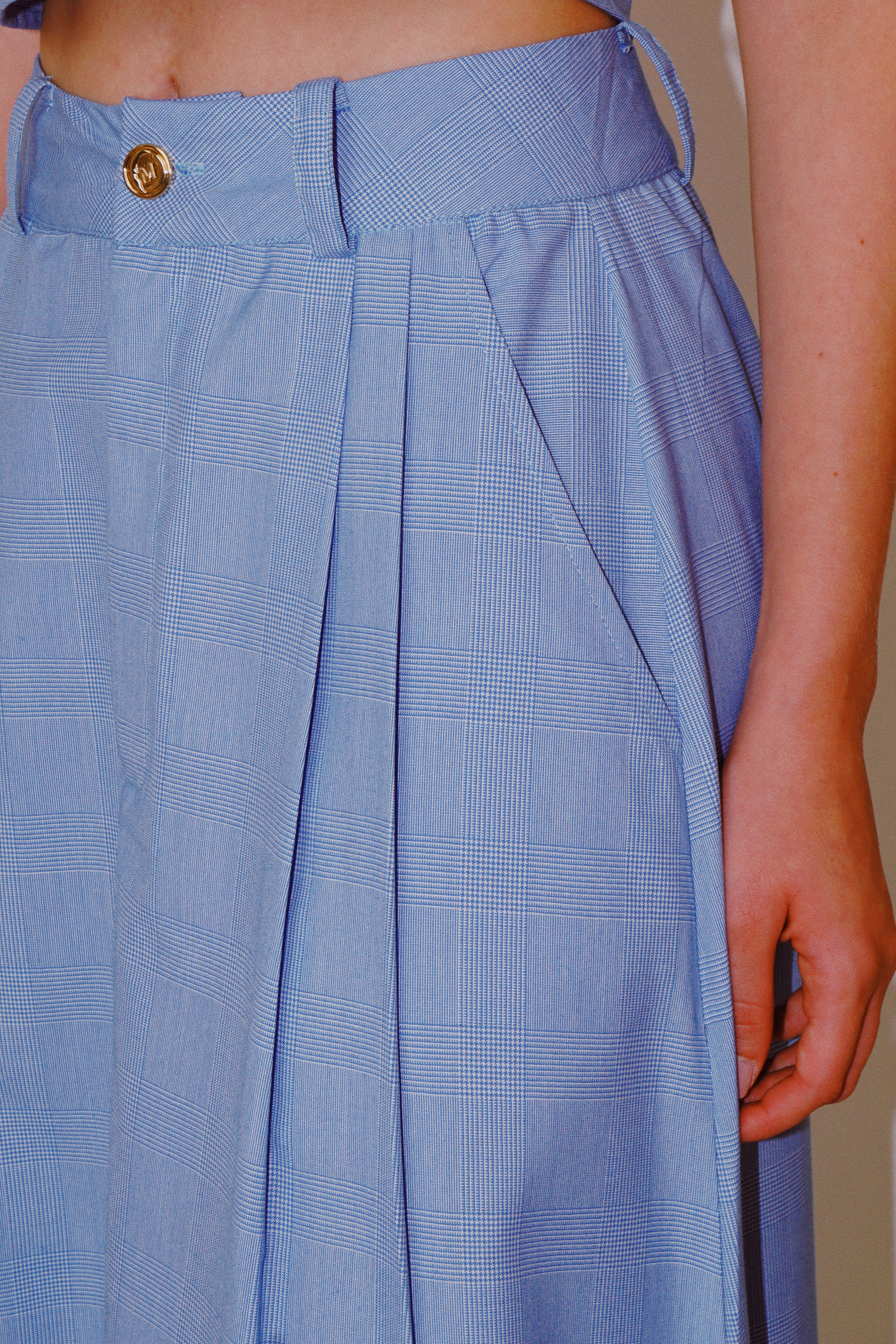 La disciplina hecha fluida. Una falda que conserva la estructura y, aun así, se mueve al ritmo del día de una líder.