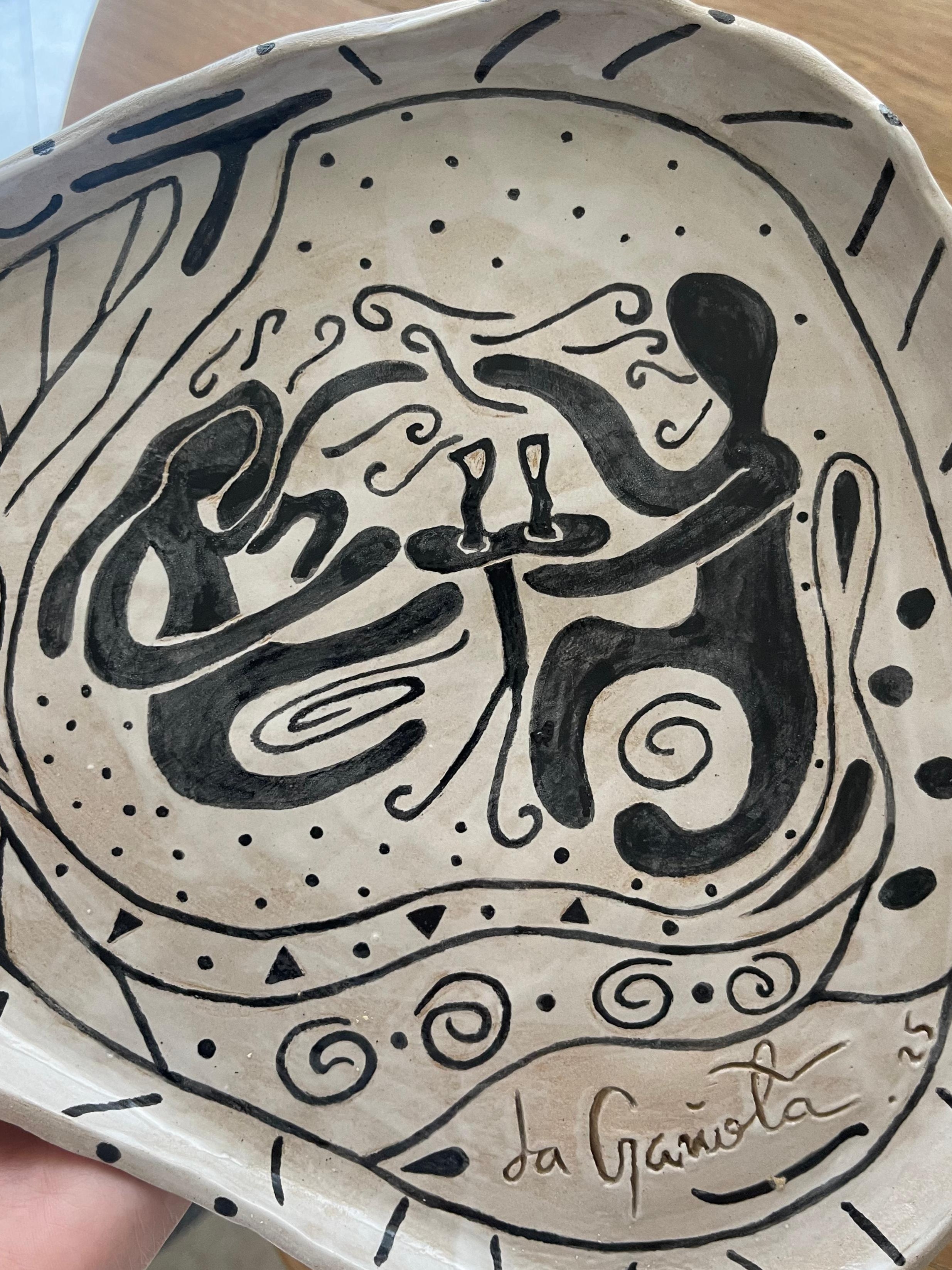Un diseño nacido de un nuevo hobbie: la cerámica. Esta bandeja elevada fue mi primera pieza moldeada y pintada a mano en arcilla. Nació inspirada en alguien que amo y a quien decidí obsequiarla. Es un reflejo de uno de los actos más subestimados de la rutina: conversar.